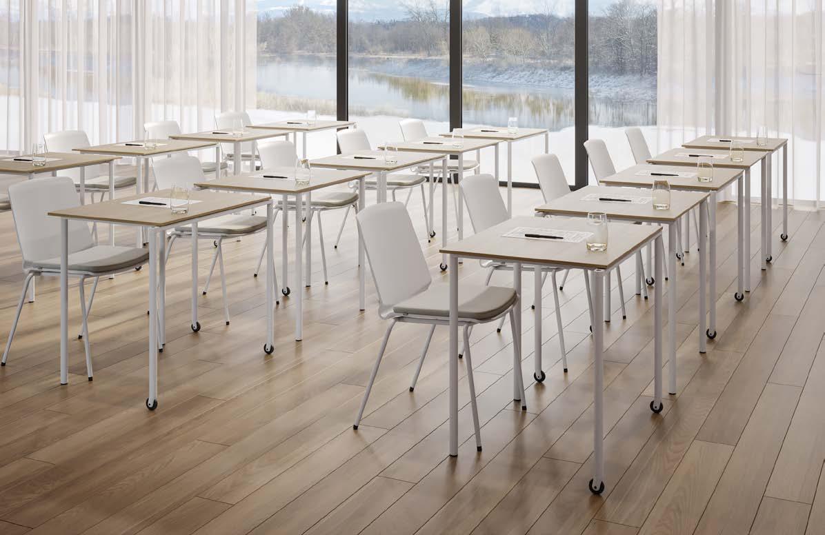 At seminars and workshops the set-up changes in accordance with the requirements of the group. The participants themselves adapt the furniture arrangement and this requires easy and uncomplicated handling. Its intelligent construction and light design, as well as its easy and ergonomic handling, make it the ultimate piece of furniture for this area.