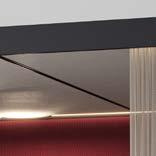 our range of “on- and infills”, which are available in various materials, textures and colours. By combining different design elements with lighting options, add-on elements and accessories, you can create the perfect ambiance. Curtains in various designs and patterns are sure to lend the space a feeling of comfort, particularly in lounge and social areas, while melamine or veneer shelves round out the portfolio and offer storage space. WORK. ON POINT.