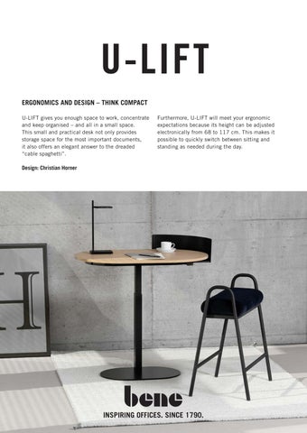 U-LIFT gives you enough space to work, concentrate and keep organised – and all in a small space. This small and practical desk not only provides storage space for the most important documents, it also offers an elegant answer to the dreaded “cable spaghetti”.