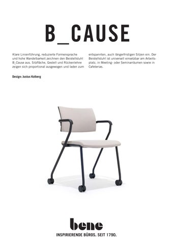 eine Auflistung der produktspezifischen Zertifikate und Designauszeichnungen finden Sie auf der Bene Produkt-Website: https://bene.com/de/produkte-raumkonzepte/bueromoebel/b_cause-beistellstuhl