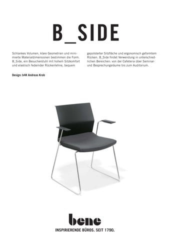 gepolsterter Sitzfläche und ergonomisch geformtem Rücken. B_Side findet Verwendung in unterschiedlichen Bereichen: von der Cafeteria über Seminarund Besprechungsräume bis zum Auditorium.