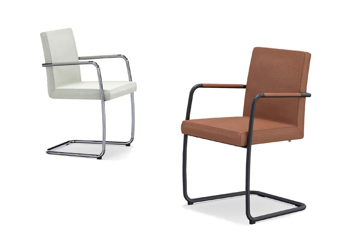 ter wartet mit hohem Sitzkomfort auf. Mit seinem klassischen und zugleich modernen Design kann der Freischwinger in allen repräsentativen Kommunikationszonen des Büros eingesetzt werden.