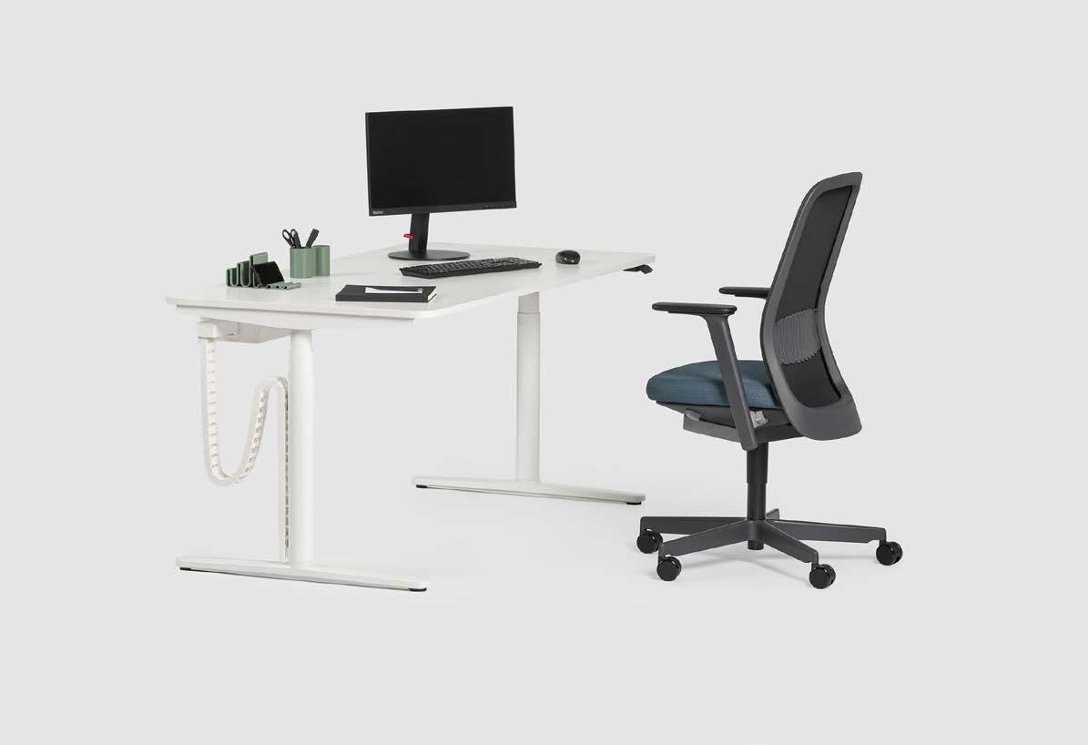 Der solide Arbeitstisch für wechselndes Arbeiten im Sitzen und Stehen. Gestell rund oder rechteckig mit 10 mm Bodenausgleich. Verschiedene Tischplattenformen: Spanplatte 19 mm oder 25 mm mit 2 mm monokante, Compactplatte 13 mm.