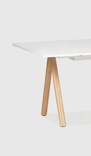 Der mehrteilige Besprechungstisch ist in den verschiedenen Gestellvarianten Delta, Delta Holz, Delta High, Delta High Holz, T-Fuß Rastomat oder T-Fuß fix (Sitz- oder Stehhöhe) erhältlich.