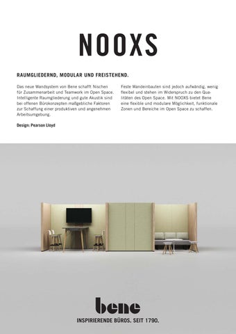 Feste Wandeinbauten sind jedoch aufwändig, wenig flexibel und stehen im Widerspruch zu den Qualitäten des Open Space. Mit NOOXS bietet Bene eine flexible und modulare Möglichkeit, funktionale Zonen und Bereiche im Open Space zu schaffen.