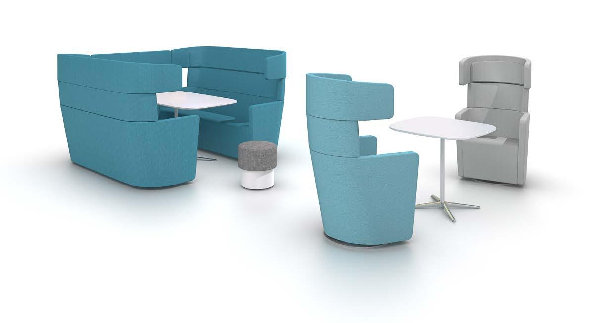 den oder abwenden, um ungestört zu sein. Beim American Diner stehen einander zwei Wing Sofas kommunikativ gegenüber – bereit für gemeinsames Arbeiten in kleinen Teams. Eine attraktive Raum-im-Raum-Kombination in zwei verschiedenen Höhen.