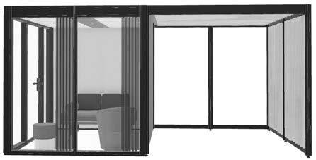 Die Planung startet mit der Definition der Grund- und Aufbaustruktur. Danach können die Wände mit Infill- und Onfill Elementen und die Decken je nach Bedarf und Funktion gestaltet werden. Add-Ons komplettieren den Raum. Mit Anbauelementen können zusätzliche Zonen wie zB Touch-Down Arbeitsplätze, geschaffen werden. 1 2 3 4 5 6 Grundstruktur Anbauelemente Decke Onfill Infill Optionen (Add-Ons)