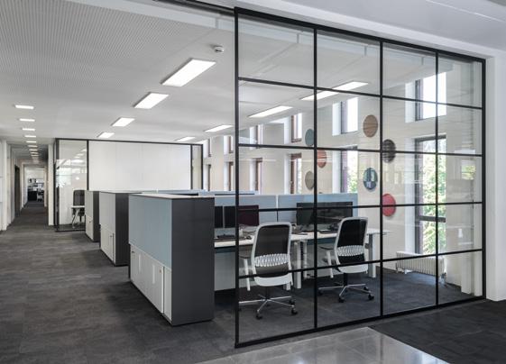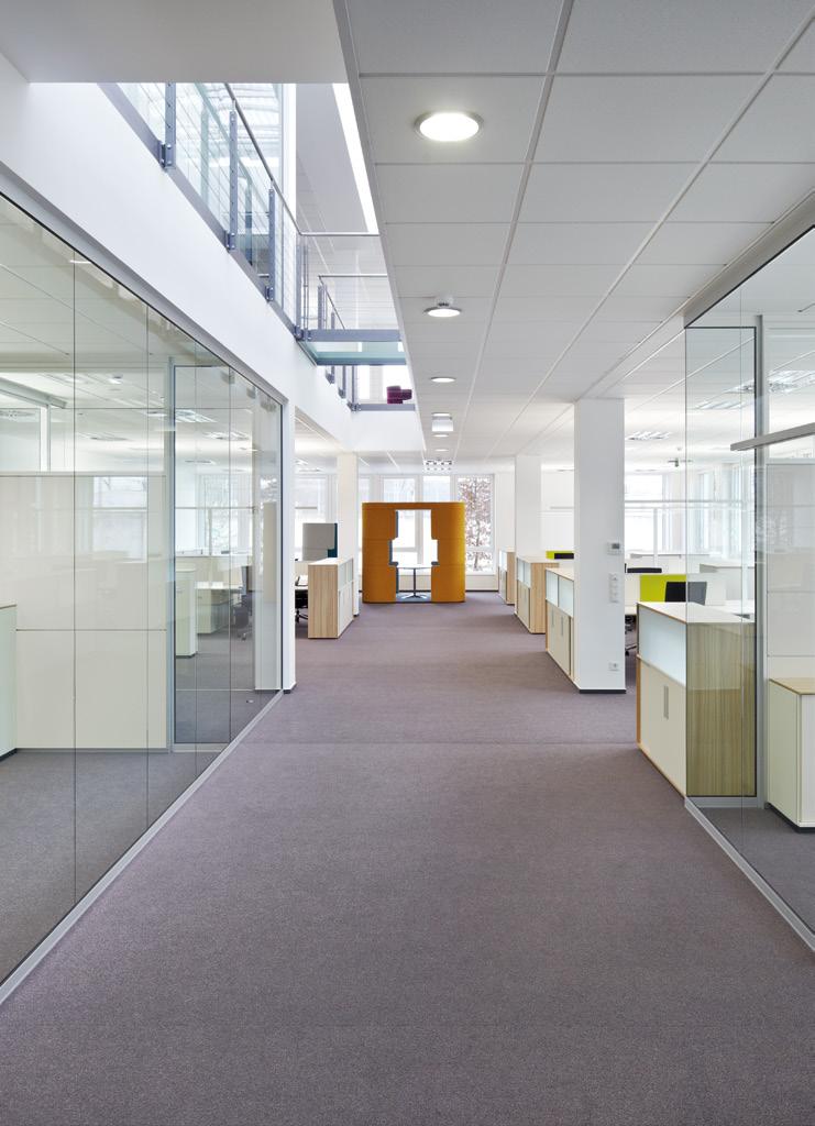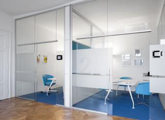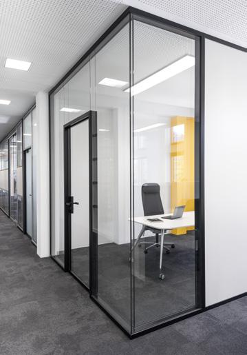 Die RG Ganzglaswand fungiert als Mittler zwischen starren architektonischen Rahmenbedingungen und flexiblen Innenausbausystemen.