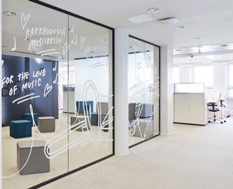 Unterschiedliche Knoten und Anschlusselemente ermöglichen Flexibilität in der Umsetzung von Kundenanforderungen unter Berücksichtigung der architektonischen Gegebenheiten. Die Verklebung der Gläser erfolgt mit einem transparenten VHB Klebeband. Der Bandraster aus Aluminium dient zur Verkabelung und zum Einbau von bauseitigen Schaltern und Steckdosen in Hohlraumdosen oder zum Anschließen an Trockenbauwände oder andere Bene Wandsysteme.