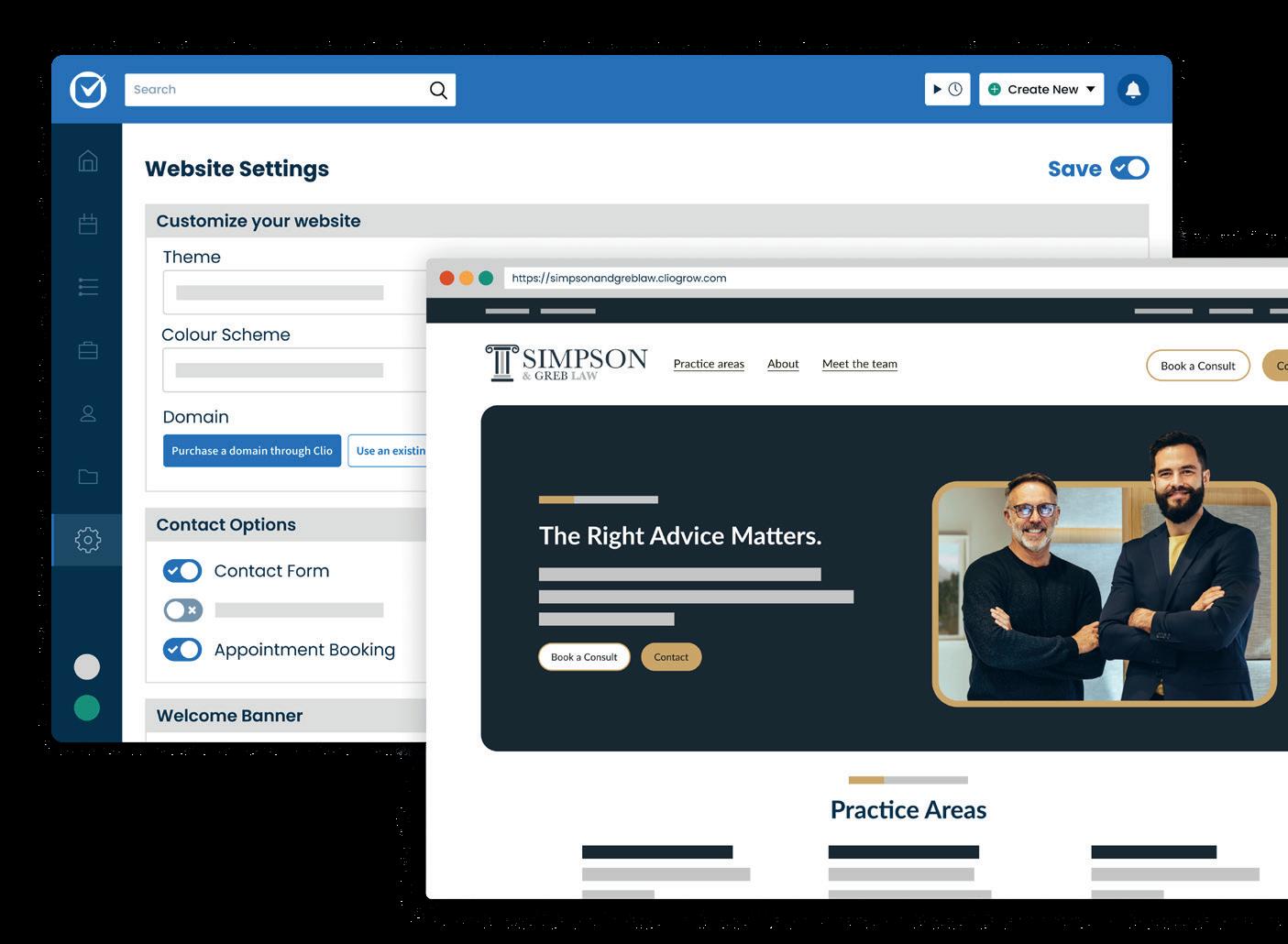 Create a fully functional website for your law firm with Clio Grow—without the money, time and headache of hiring someone or trying to DIY it.
