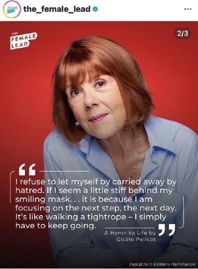 to feel ashamed; that even after unimaginable betrayal, we can go on; that the colour can come back to life. Ultimately, Gisèle Pelicot emerges with a renewed passion and reverence for living and for love.