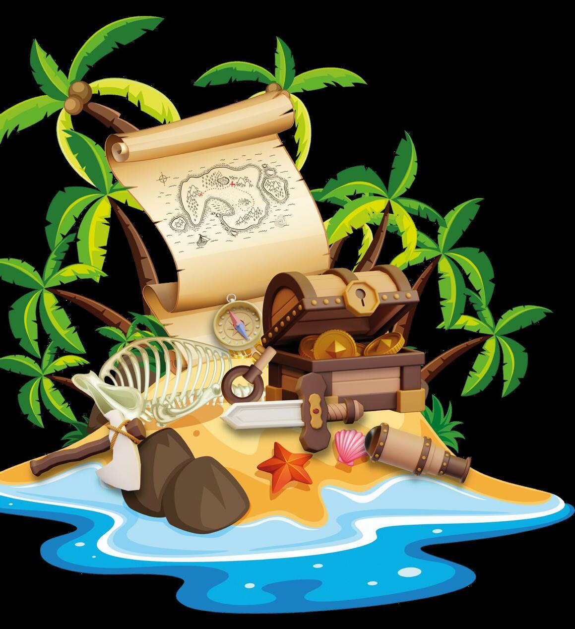 behind a chest containing a map with directions to hidden treasure on a distant island.