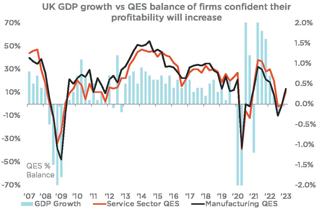 Business confidence improves but conditions remain largely unchanged. The BCC’s Quarterly Economic Survey (QES) for Q1 2023 – the UK’s largest independent survey of business sentiment and a leading indicator of UK GDP growth – shows that while business confidence has improved from a very weak base, most firms see no improvement to business conditions.