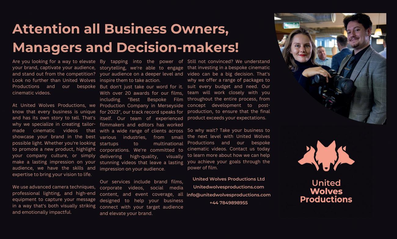 Throughout February the Chamber hosted our first series of #GrowMySME Marketing and Sales Workshops of the year, supporting over 30 growing businesses with insights from the world of marketing and sales. Taking place over four weeks, we were joined by experts from Bolland & Lowe, A&B Marketing, United Wolves Productions, and Sales Geek Liverpool, covering topics from brand and digital marketing to creating video content and increasing revenues.