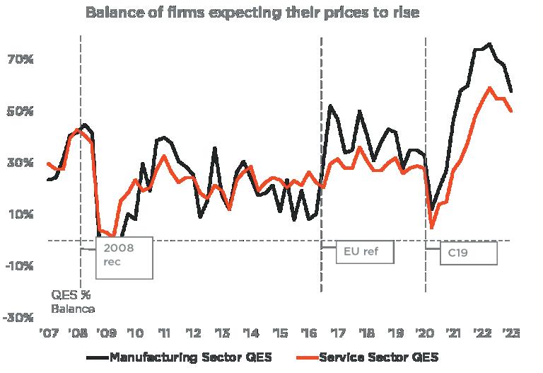 The percentage expecting their prices to rise (55%) remains at record highs, although is showing continued signs of easing.