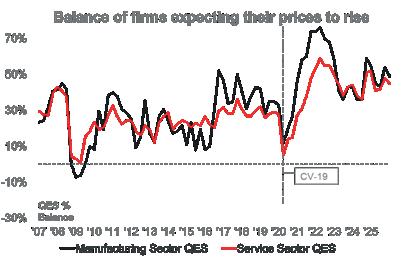 Even before the likely inflationary impact of the Iran conflict, 49% of responding firms said they were likely to raise prices over the coming quarter (down from 52% in Q1).