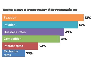 Tax remains the biggest concern for business, cited by 54% of firms (down from 63% in Q4). Half of firms (50%) remain concerned about inflation.