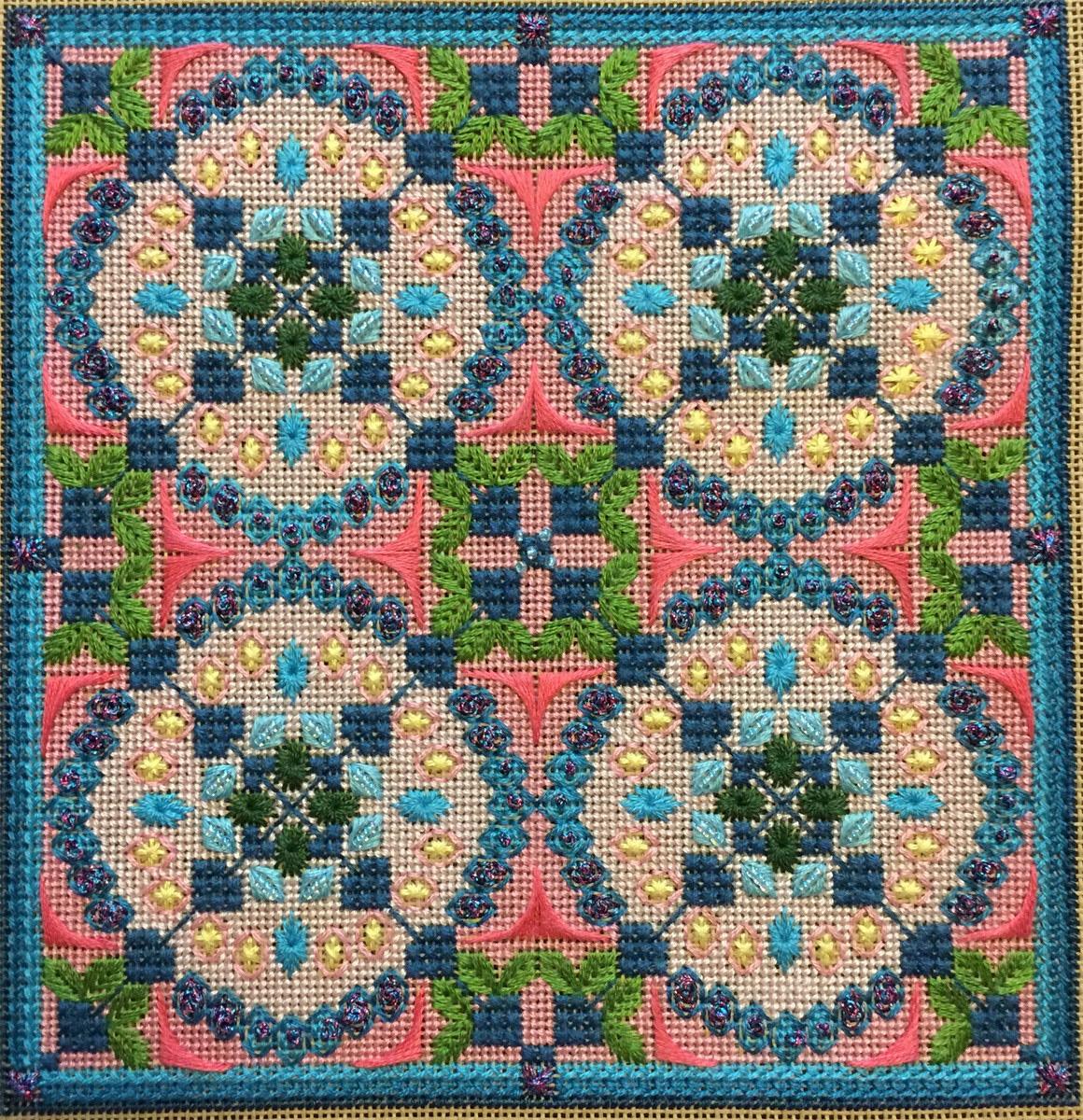 “I always wanted to be an artist, but I knew I was going to starve, so I chose to take another route,” says MaryFrances KellyPoh in a matter-of-fact way, about her life path. That route was a career in healthcare, a path that led her to a home in Solano County, meeting her husband in Vallejo, and teaching herself needlepoint. She displays her award-winning needlework and watercolors at First Street Arts Gallery in Benicia. “I’ve done needlework for more than 40 years. I love doing it.” She is entirely self-taught in needlepoint, bargello, and cross-stitch. She stitches almost exclusively using silk and metallic threads, most often creating her own designs.