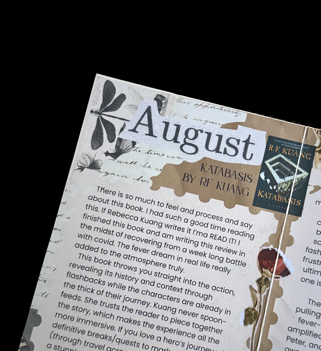 This month’s Booktails (pg. 24) also brings something new: our first-ever guest reviewer! Meg of Sunday Hours Co. shares her thoughts on Katabasis by R.F. Kuang, a dark academia fantasy that left both of us with plenty to talk about.