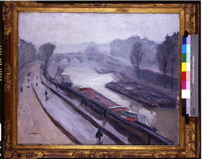 Marquet emménage au 25 quai des Grands-Augustins où il commence une série des vues du quai en direction du pont Saint-Michel et de Notre-Dame. FIG