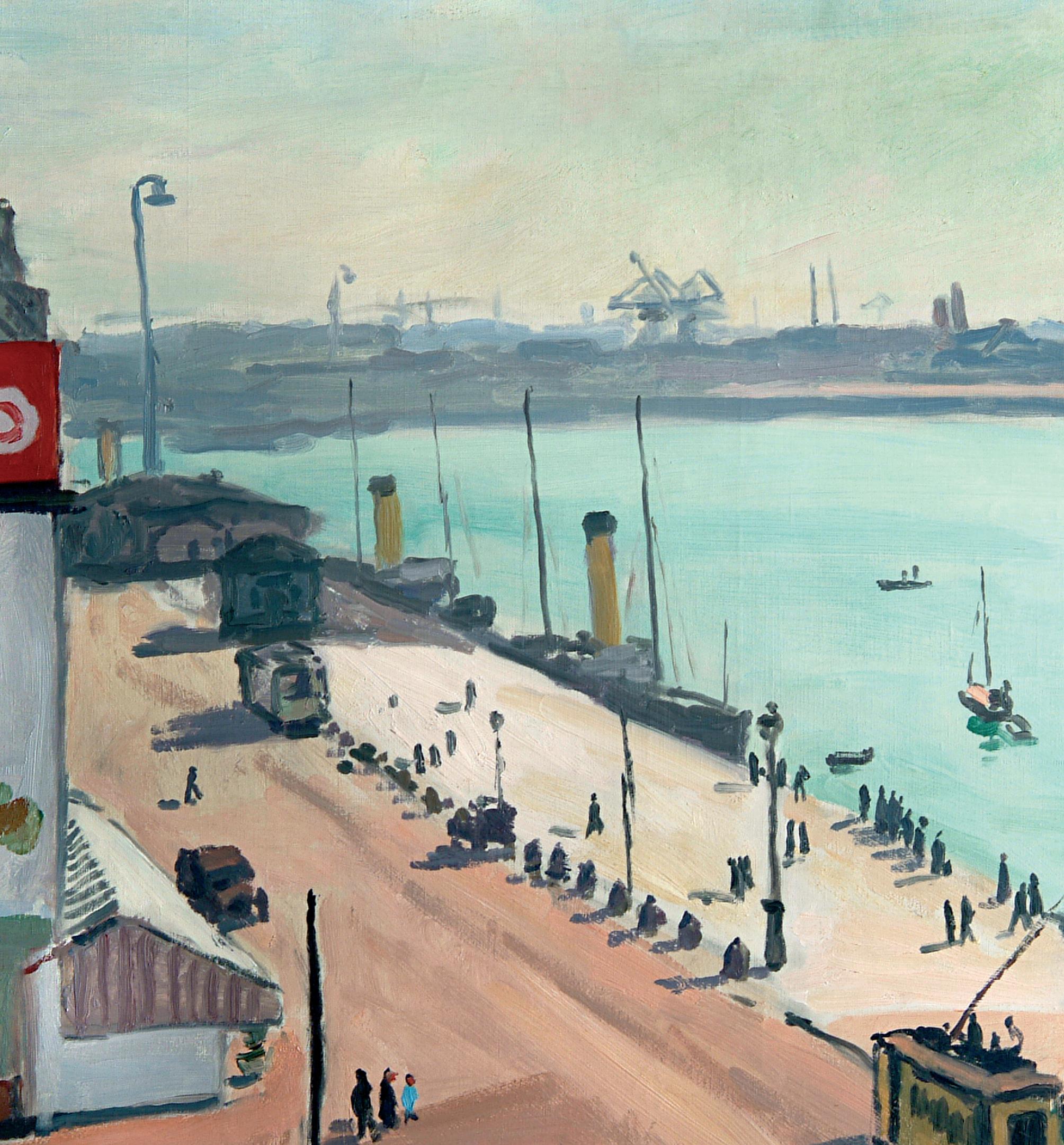 Il en résulte une atmosphère calme et intemporelle qui font tout le charme. On peut y voir une suite de ses vues de Naples qu’il visite en 1909 et 1911 où, d’une certaine façon, il réinvente la veduta par la précision topographique du port associée à son sens du détail de l’activité portuaire.
