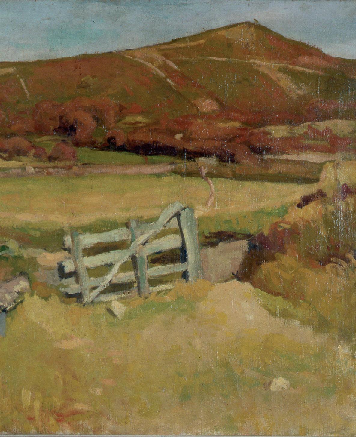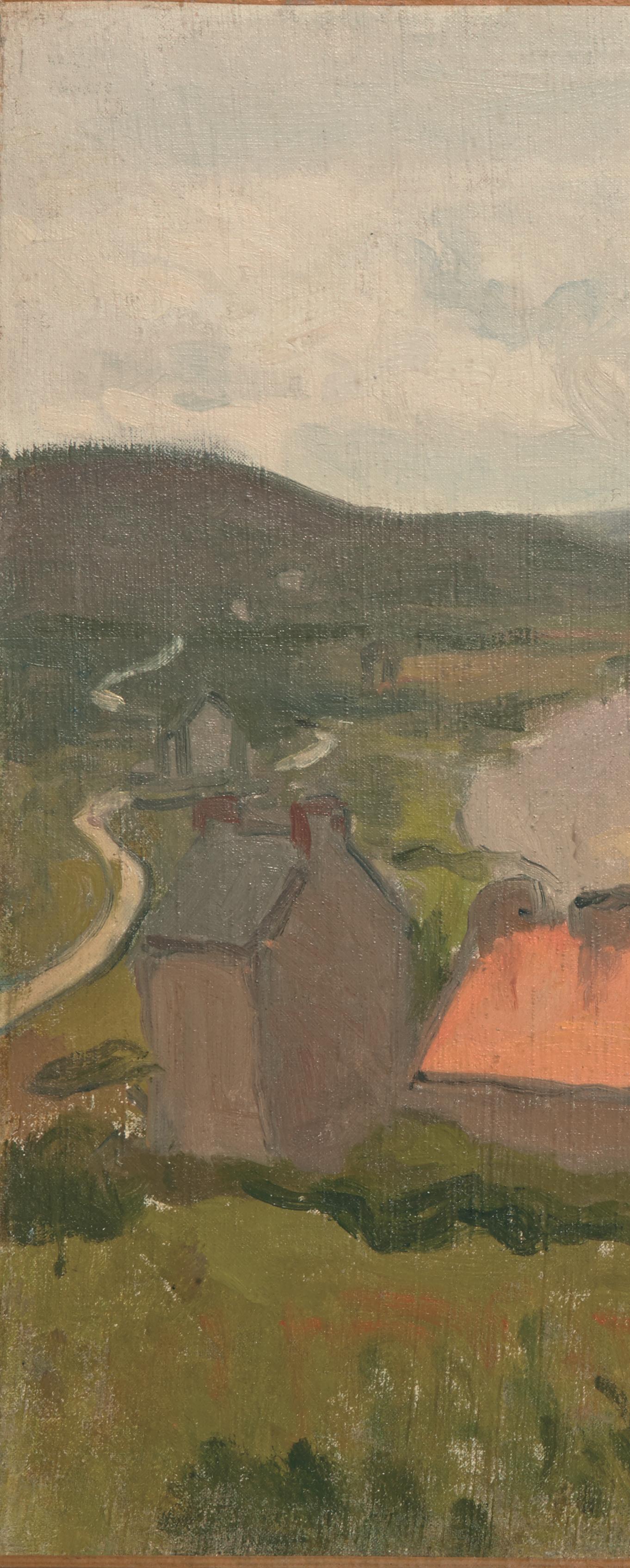 côte ouest de la péninsule, à moins de trente kilomètres du hameau natal du futur peintre de Barbizon, Marquet arpente ce territoire à la beauté sauvage entre terre et océan, le long des sentiers côtiers, ou s’avançant plus profondément dans la lande. Son regard se porte alors vers ces paysages vides, sans motif, dont il retient, comme son aîné, l’austère composition (fig Millet).