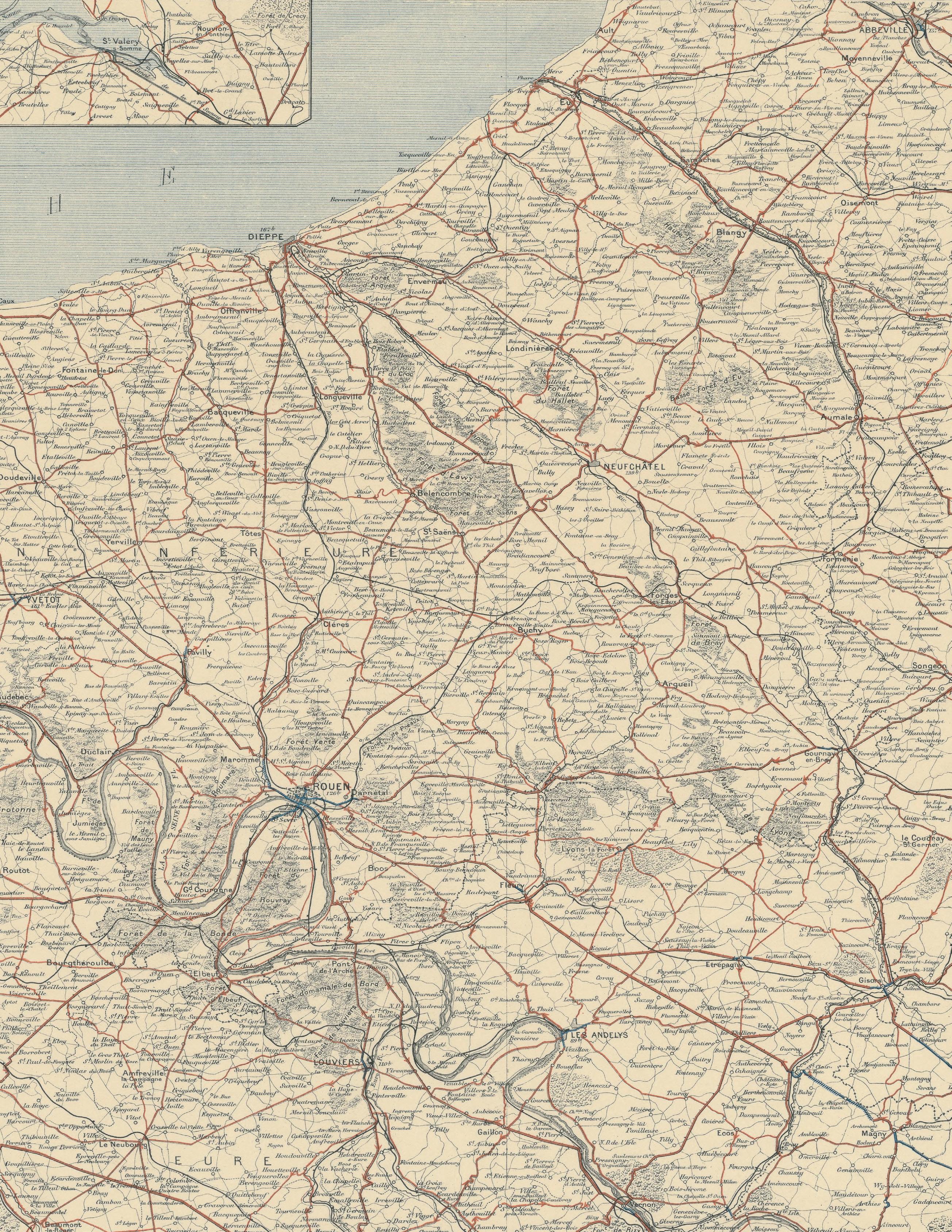 De juin à août, séjour en Normandie où, conseillé par Signac, le couple Marquet s’installe dans une pension de Vieux-Port (Eure), en bordure de Seine. Camoin et Georges Besson leur rendent visite. Il pleut beaucoup et le couple se déplace à Rouen. Pour changer de point de vue, ils vont jusqu’à Canteleu où Marquet peint des vues presque identiques qui se distinguent toutefois par la luminosité ou la présence humaine plus ou moins importante. Lassés de la pluie, ils rejoignent Saint-Jean-de-Luz. Court séjour à Honfleur1