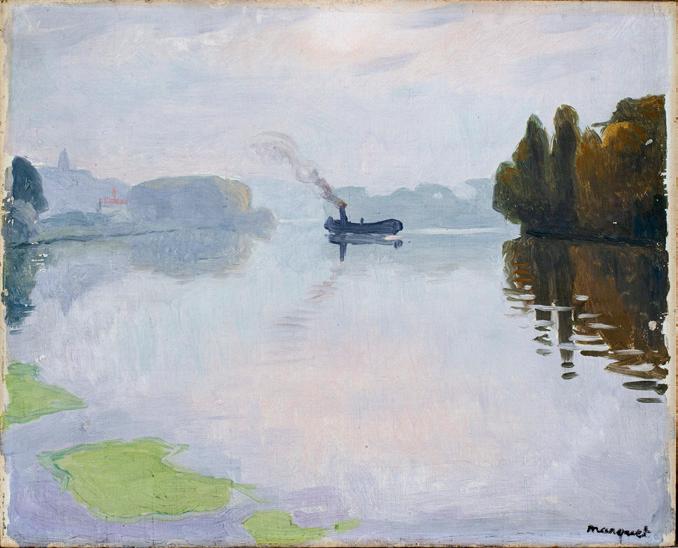 À la suite de l’exposition « Le Vent. «Cela qui ne peut être peint» », on comprendra que Marquet est bien un artiste « météorologique ». Car plus qu’un autre peut-être, il sait dire la brume perlée des bords de la Seine, le gris sans espoir de lumière mais si calme, le silence apaisé (même quand la fête bat son plein, ou que sur la plage se mêlent