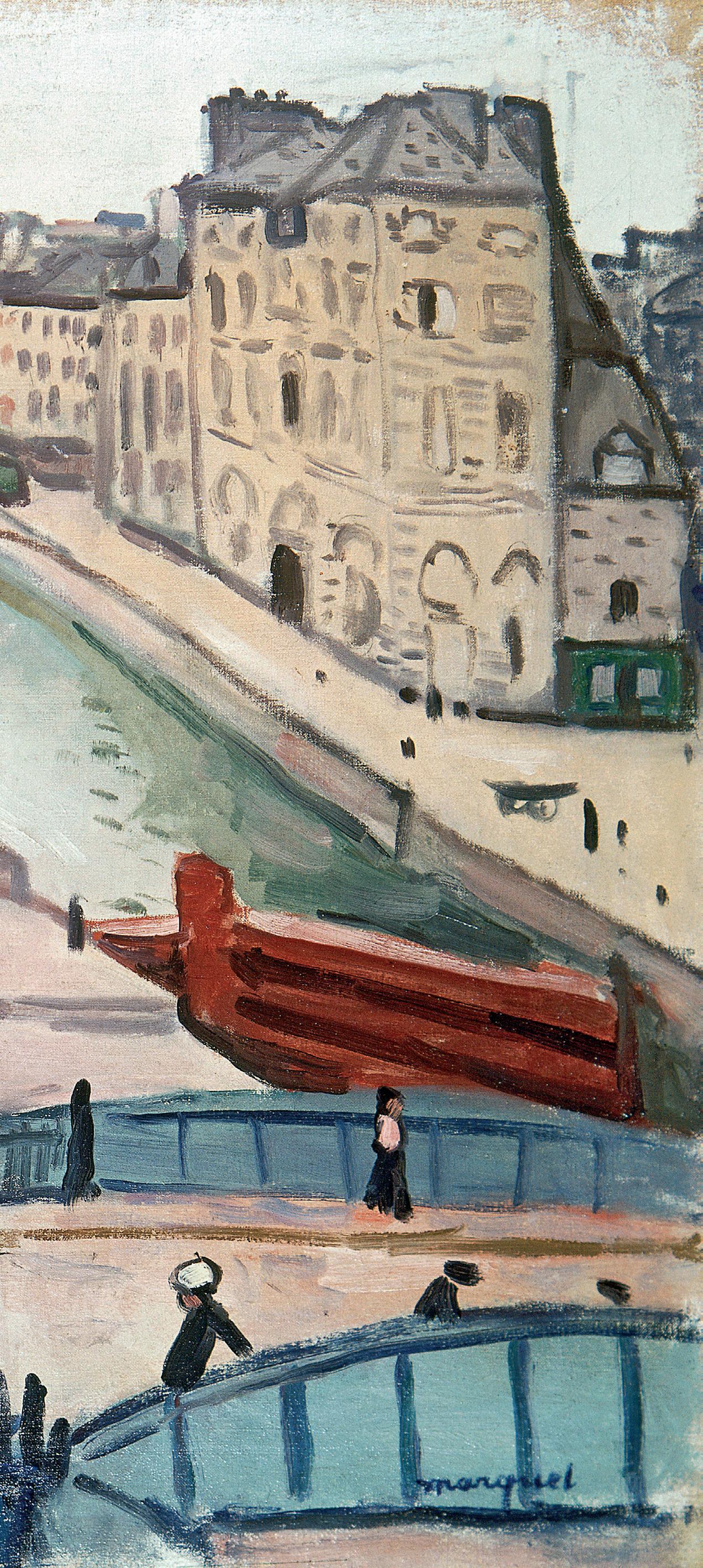 Première exposition commune Marquet-Matisse à la toute jeune galerie Berthe Weill, rue Victor Massé à Paris. Marquet loue une chambre au 25 quai de la Tournelle d’où il peint une série d’absides de Notre-Dame.