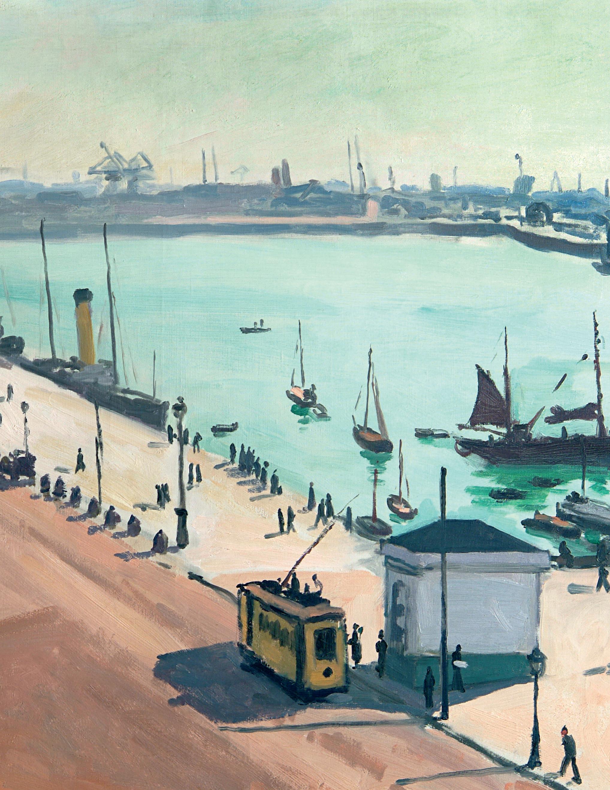 Ceux-ci nous apprennent beaucoup sur la variation des motifs, sur les points de vue choisis, sur sa gamme chromatique utilisée pour peindre par exemple une mer changeante, sur son sens de la simplification, sur les prémisses des séries mais aussi sur son goût pour le monde portuaire, l’animation humaine, l’esthétique industrielle, le mouvement des bateaux et ce n’est pas un hasard s’il deviendra, à la fin de sa vie, officiellement « peintre de la Marine ». Résolument moderne et fasciné par la vie maritime, il perpétue la tradition de peintre de port en montrant le monde tel qu’il le voit et tel qu’il l’aime.