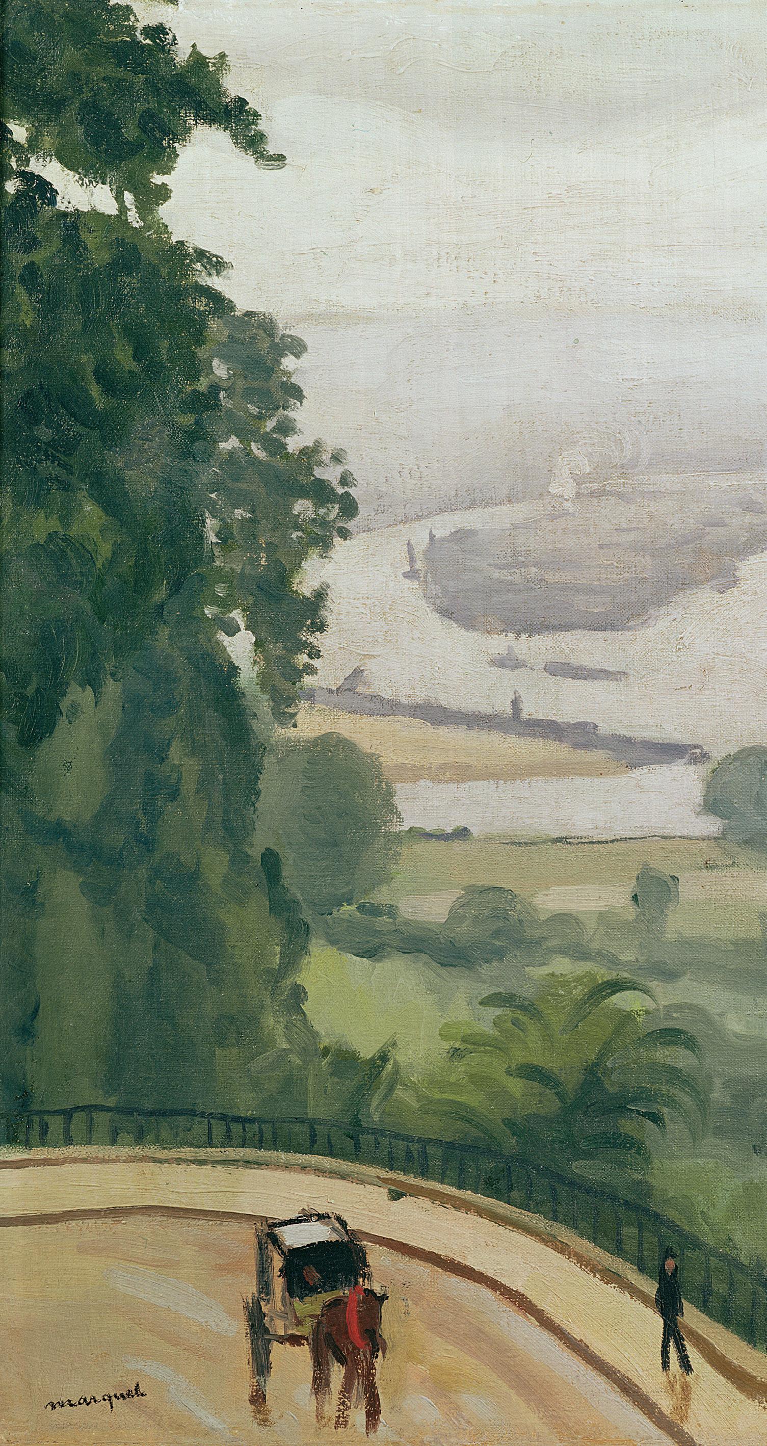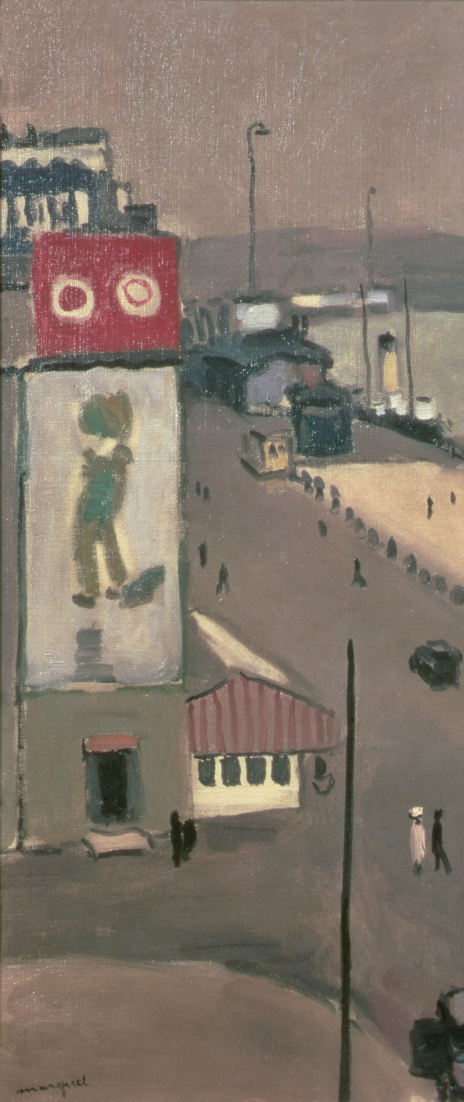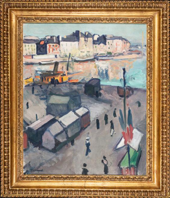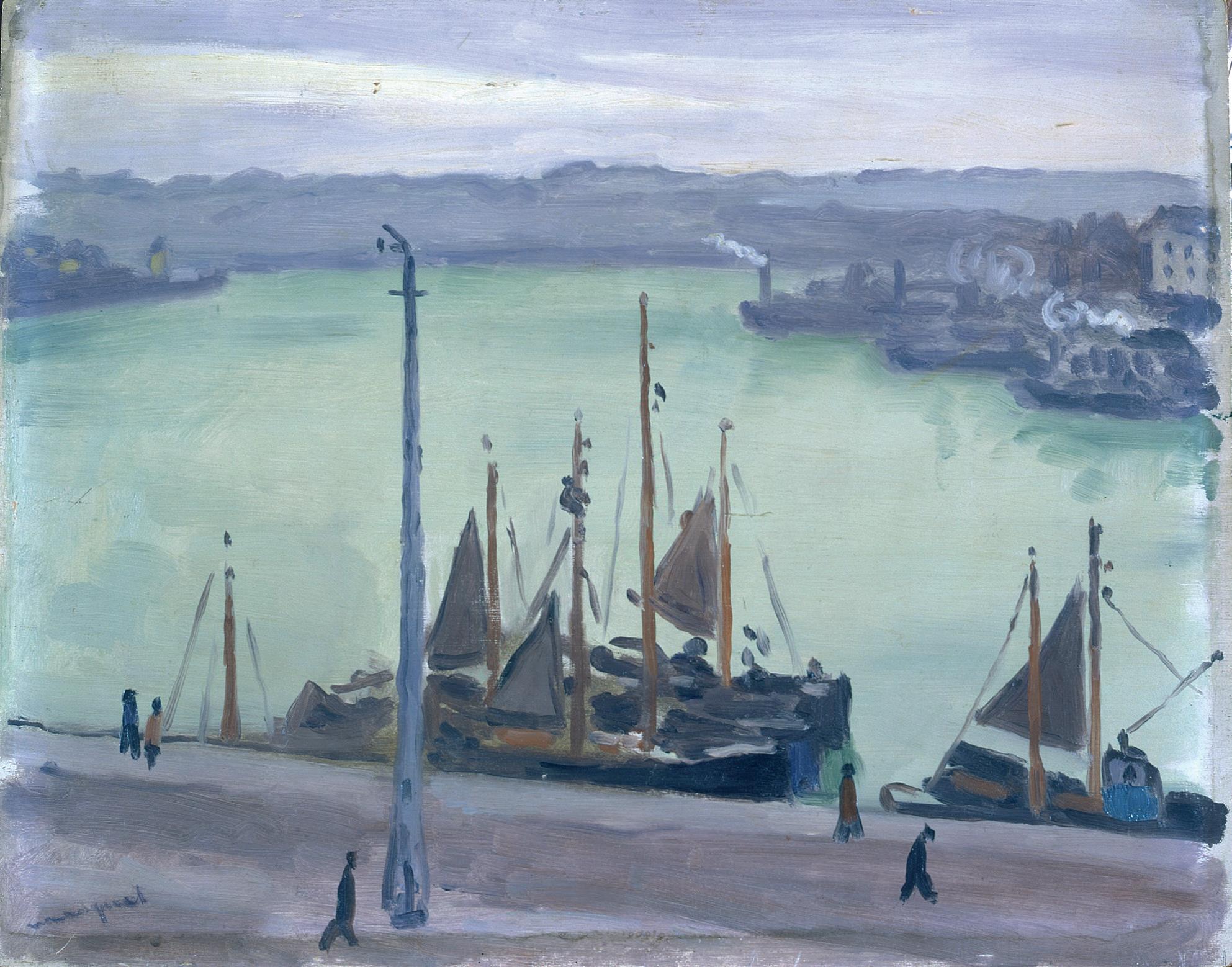 de l’art moderne au Havre avec deux œuvres : Quai des Grands-Augustins, temps gris et Quai des Grands-Augustins, brouillard. Logé chez le critique G. Jean-Aubry, secrétaire du Cercle, Marquet visite l’exposition. FIG Rentré à Paris, Marquet revient au Havre en juillet où il séjourne à l’hôtel du Ruban bleu. Il y retrouve Dufy, avec lequel il peint de concert. Sensiblement du même âge, ils parcourent la Normandie, de Trouville à Fécamp en passant par Honfleur.