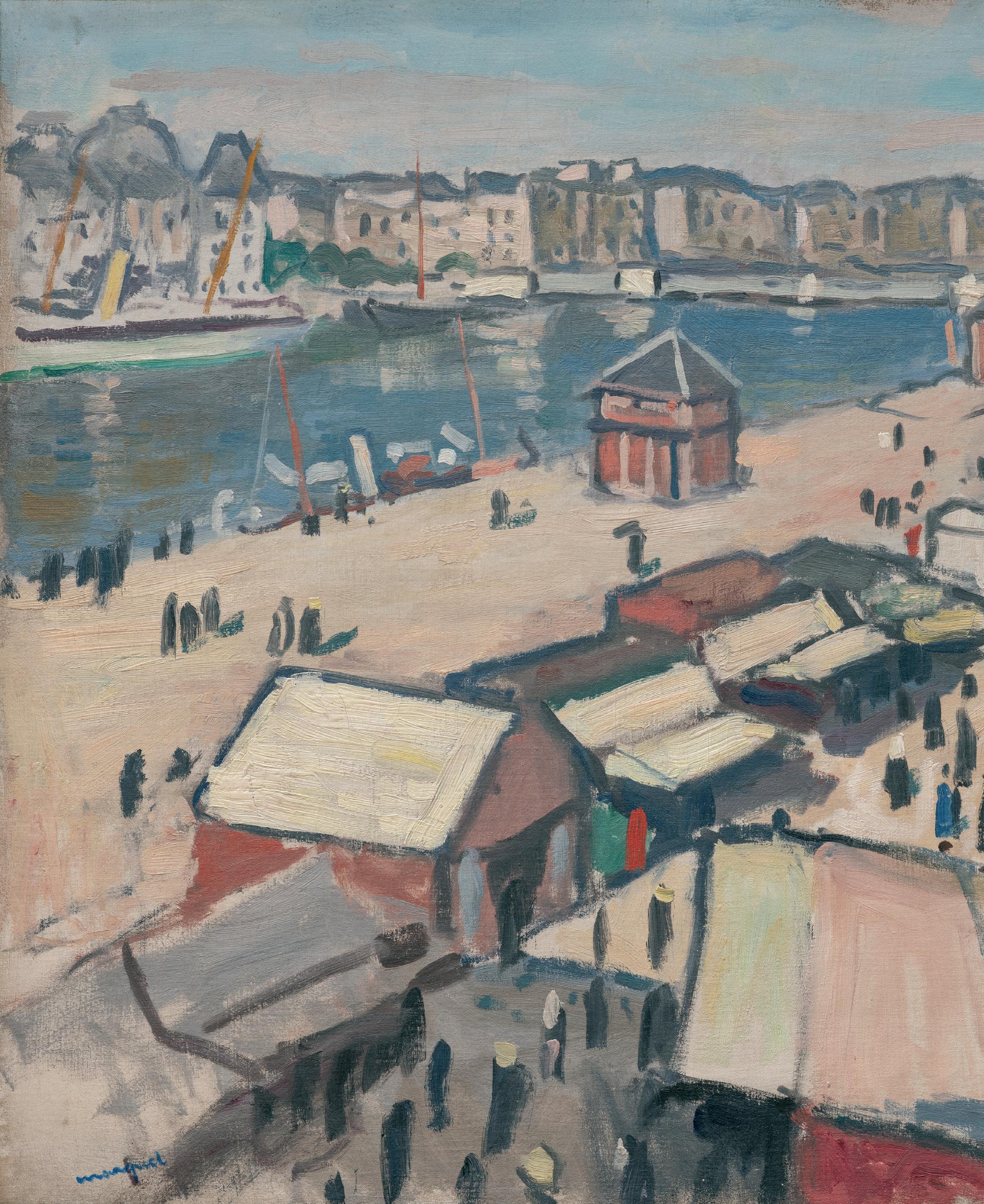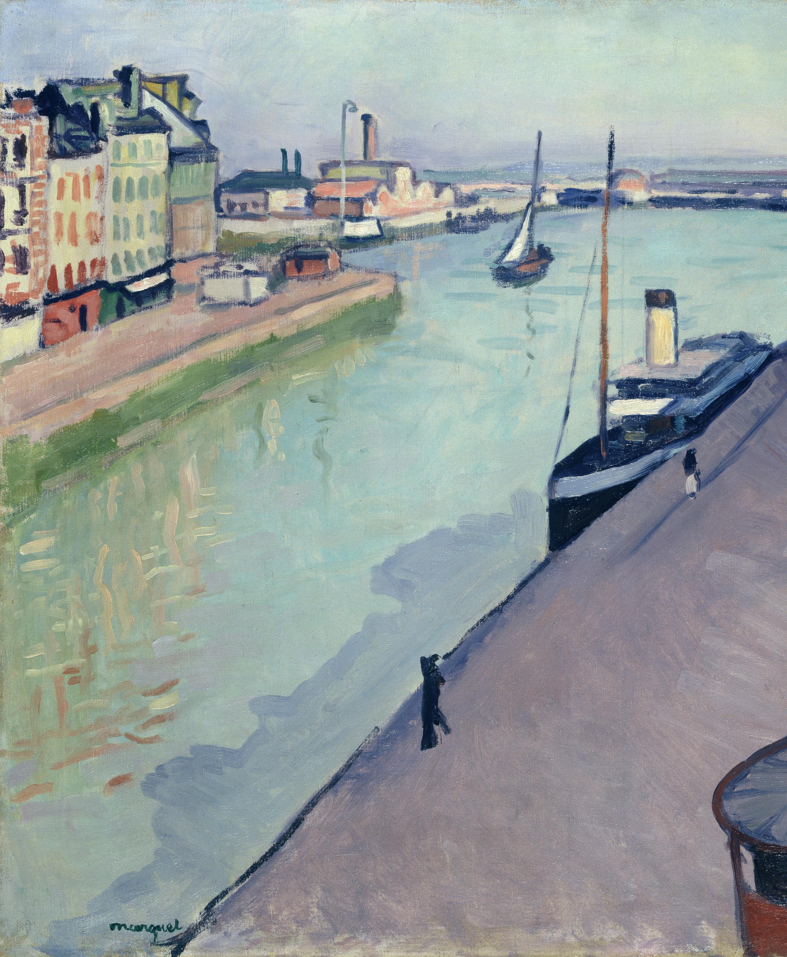 Dans la lignée des expositions consacrées aux peintres particulièrement bien représentés dans ses collections ou à ceux qui ont entretenu un lien particulier avec Le Havre et la côte normande, le MuMa propose cet été de rendre hommage à Albert Marquet. Cet artiste, discret et élégant, encore trop méconnu du grand public est en effet de ceux qui sont venus et revenus sur ce territoire, pour y peindre et qui y ont rencontré un accueil particulièrement attentif et heureux. Enfin, presque… puisque Marquet eut aussi à se confronter à l’hostilité du directeur du musée du Havre, qui s’opposa en 1906 au dépôt par l’Etat d’une œuvre fauve que celui-ci venait d’acquérir (Port de Fécamp, cat X) et que l’artiste souhaitait voir attribuer au musée havrais. Cet incident, qui vaut aujourd’hui au musée de Quimper le plaisir d’exposer cette toile, témoigne des débats vifs qui accompagnèrent l’émergence des avant-gardes en peinture au début du XXe siècle. Mais si Alphonse Lamotte, peintre lui-même et partisan d’une ligne académique, fit preuve d’une implacable animosité, Marquet eut aussi au Havre, d’influents admirateurs.