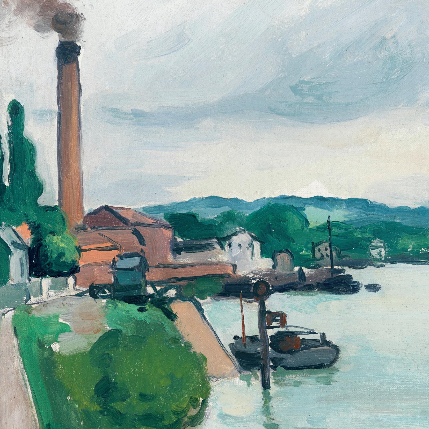 Mais cette nature sans âme ne le satisfait pas : il y cherche les traces d’une activité humaine. Un toit, une barrière, une cheminée d’usine. Les paysages presque vierges sont assez rares chez lui. On peut les rapprocher de ceux peints l’année suivante en 1905 à Agay en compagnie des peintres Manguin, Valtat, Cross et Camoin, autre camarade fauve. Même si la luxuriance de la nature apparaît à travers les palmes de la végétation, prélude aux paysages d’Algérie, sa gamme chromatique, respectueuse du ton local, reste en de ça des exagérations d’un Dufy ou d’un Matisse.