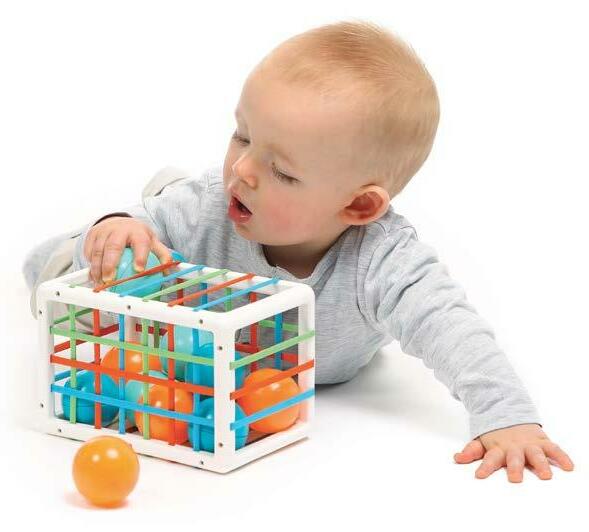 Les enfants s’amusent à introduire les balles dans le cube à travers les élastiques colorés, puis à les retirer. 10+ mois 29,99$