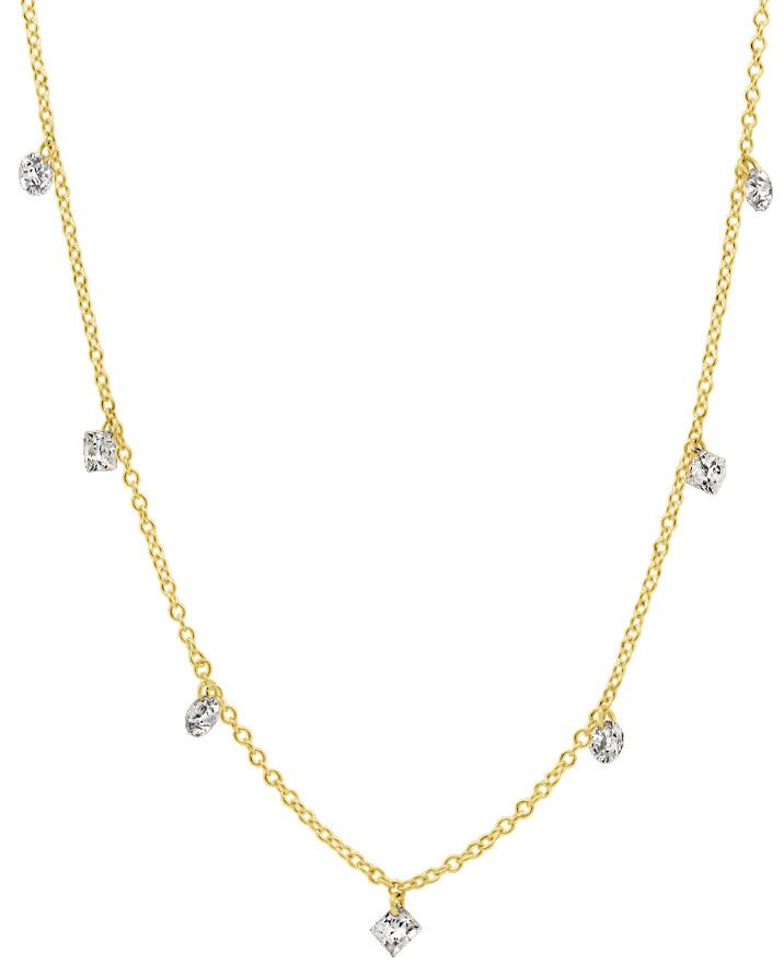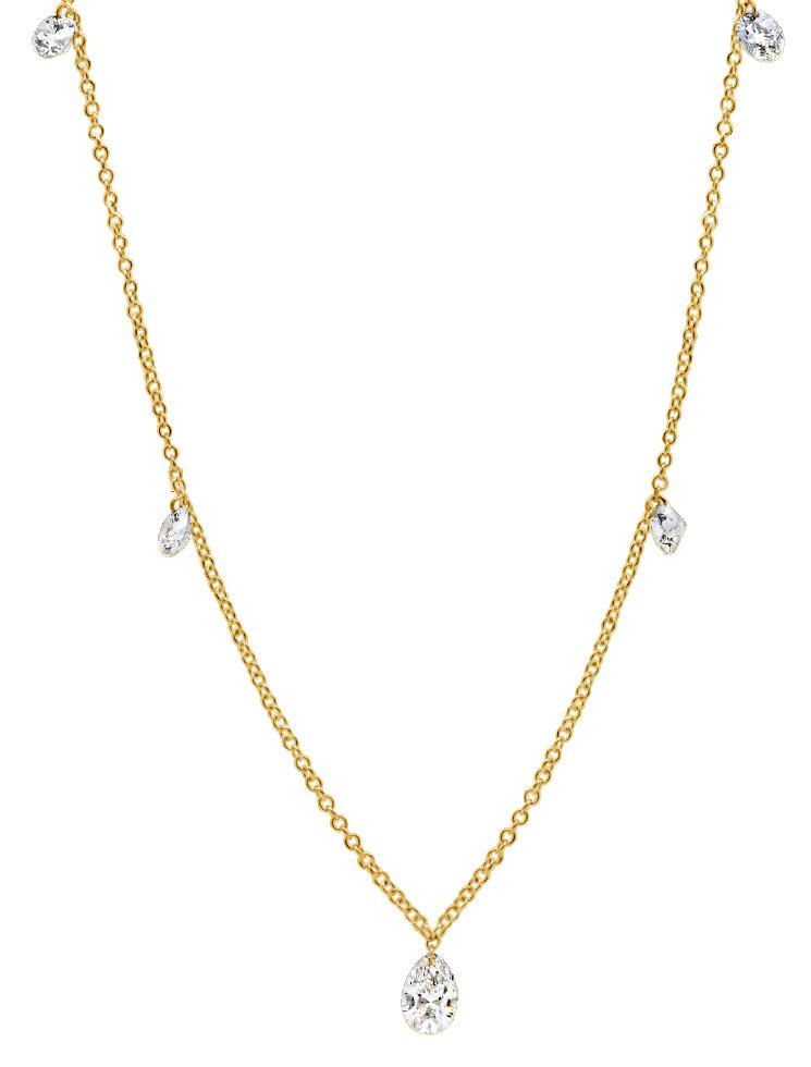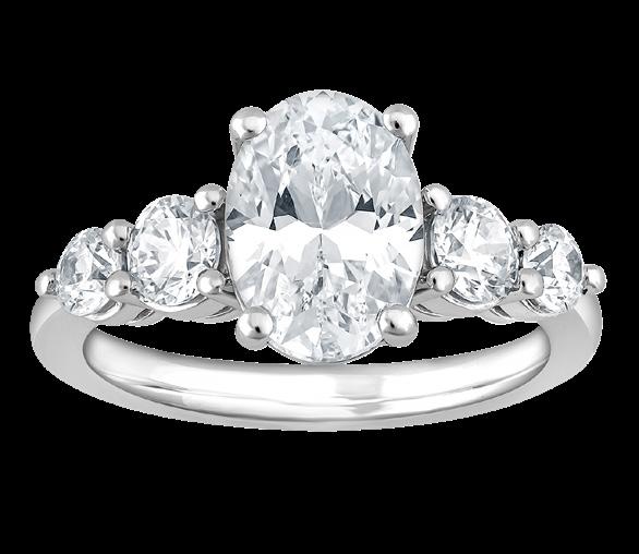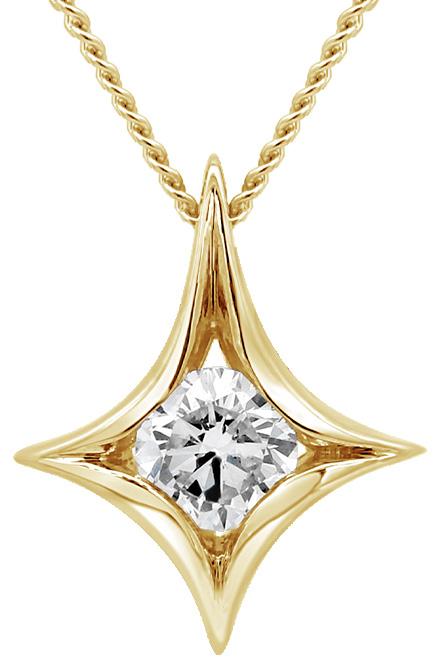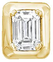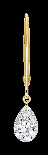 The drilled diamond creates a sense of lightness by revealing the diamond’s natural beauty without the using a heavy setting. This allows light to shine through on all angles.