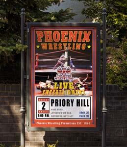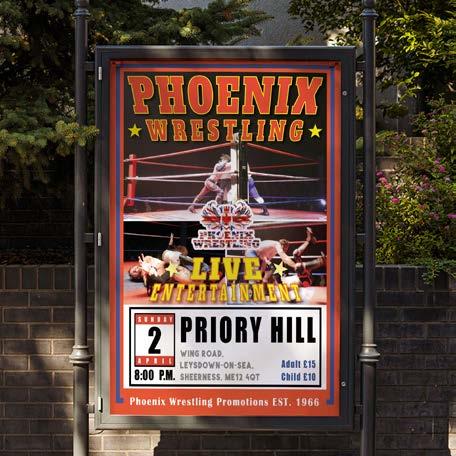 To connect with the audience, I incorporated event photos, making the action feel real and immersive. The overall layout follows the traditional wrestling poster style, paying tribute to the legacy of Phoenix Wrestling Promotion. However, I introduced modern design elements to refresh the look, creating a dynamic balance between nostalgia and contemporary appeal. The result is a visually compelling poster that celebrates the past while driving anticipation for the future.