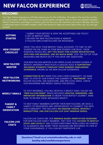 New Falcon Experience- Summer Important Dates