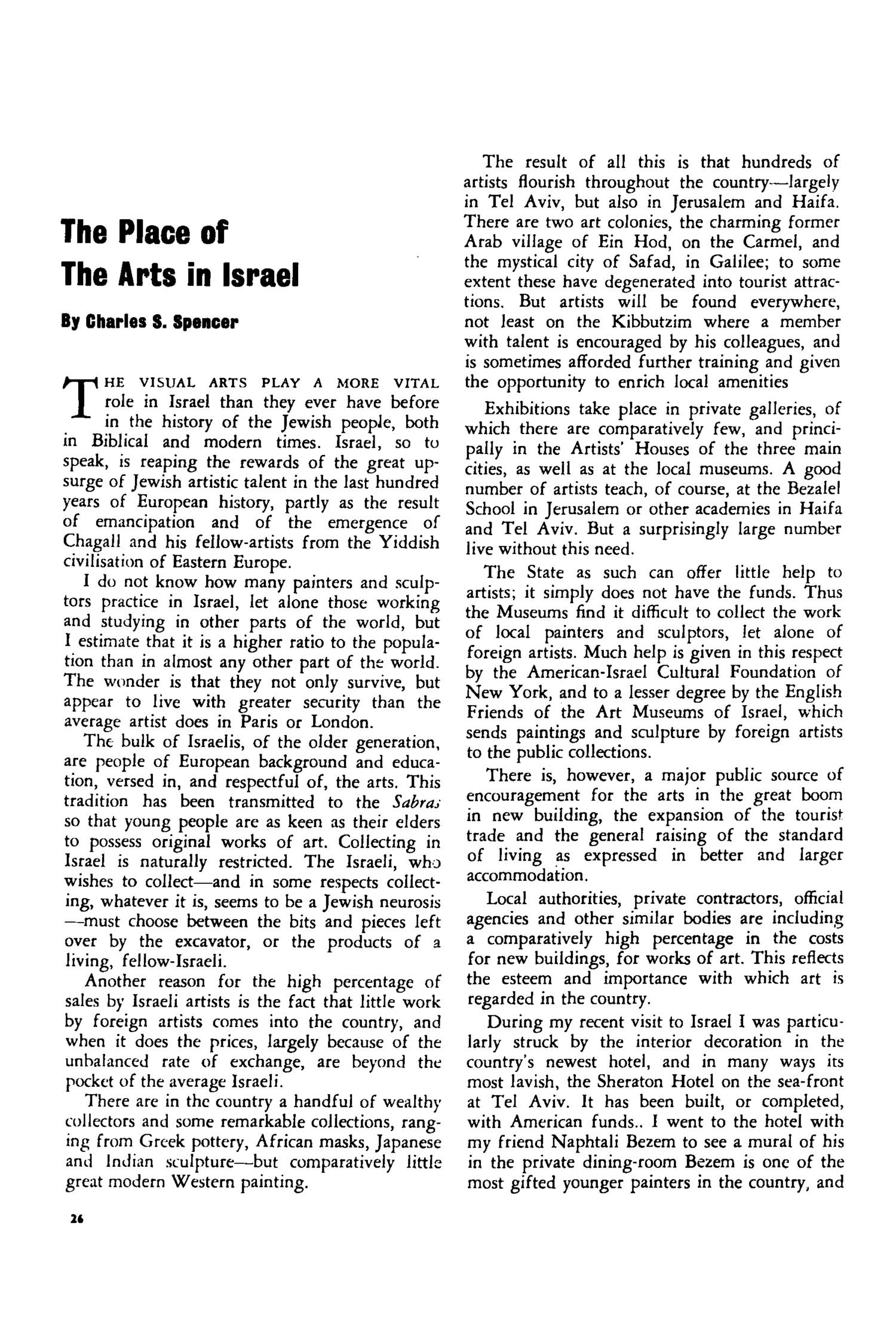 Summer 1961: The Place of The Arts in Israel by Charles S. Spencer