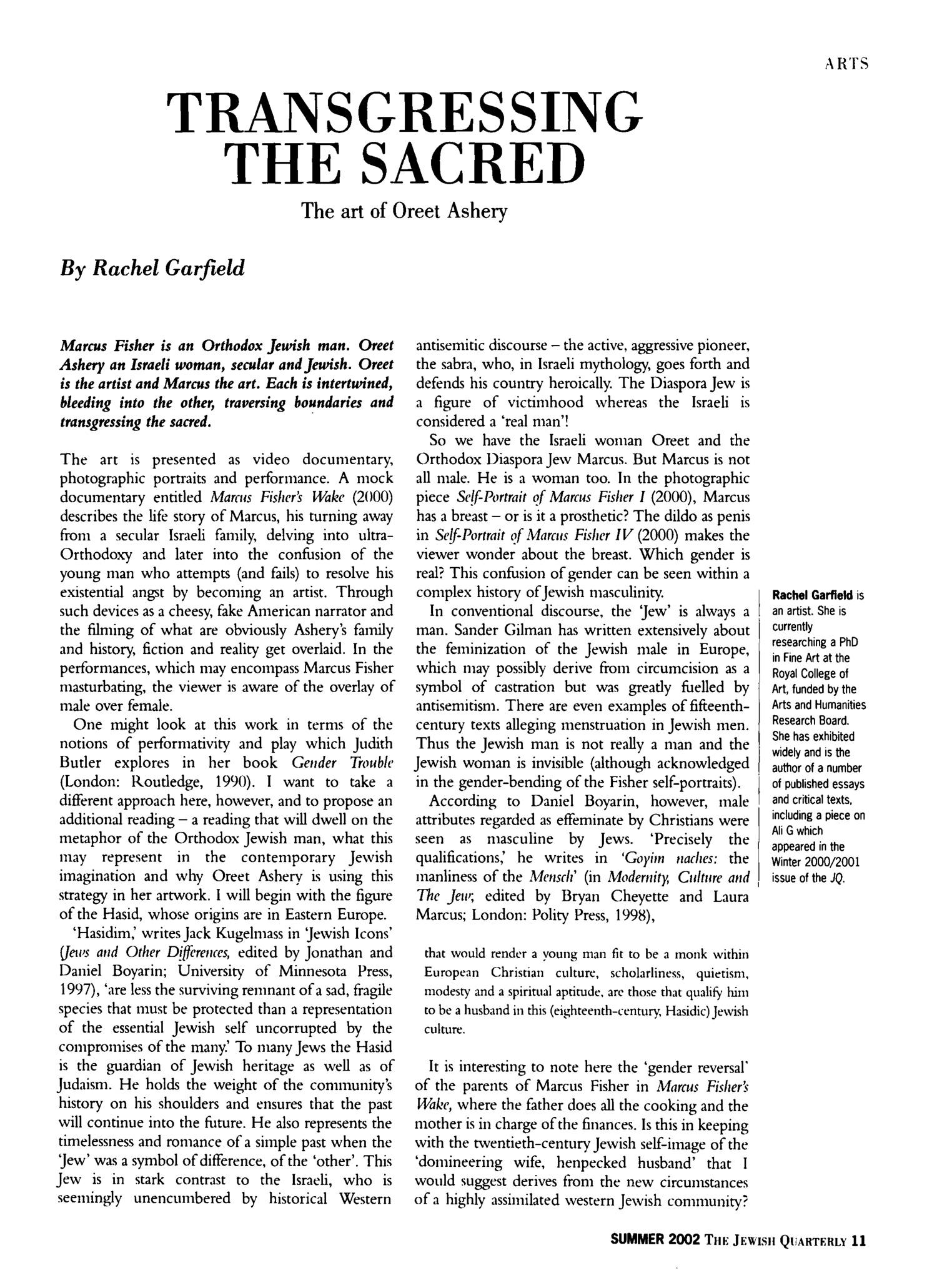 Summer 2002: Transgressing the Sacred The Art of Oreet Ashery by Rachel Garfield