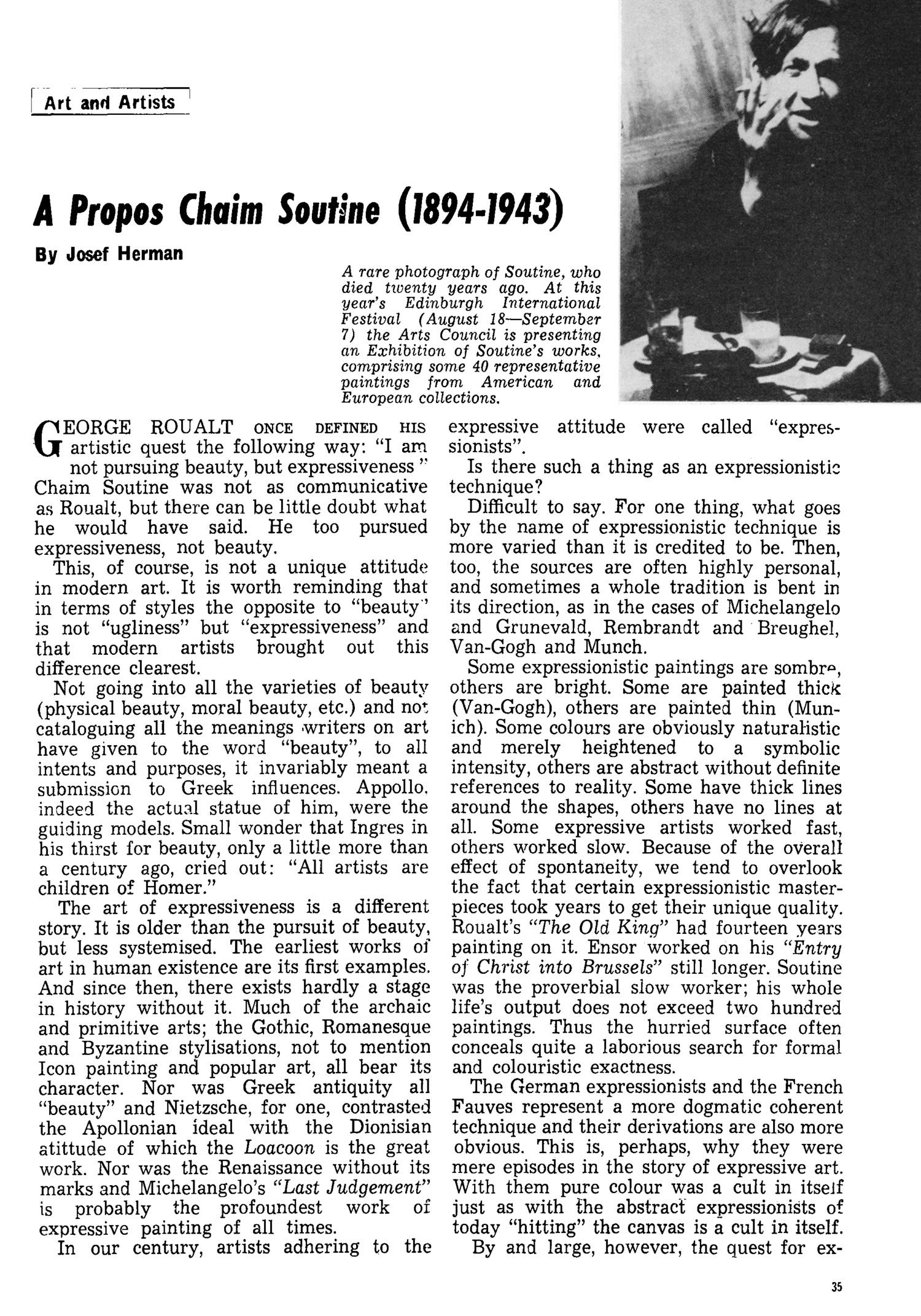 A PROPOS- CHAIM SOUTINE (1894-1943)
