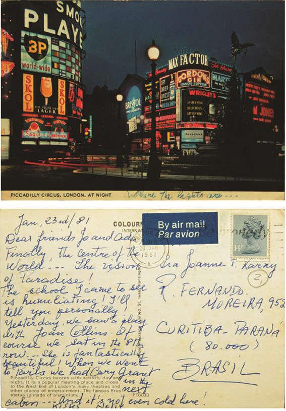 I thank Dr Michael Asbury for the help on my arrival at the Chelsea College of Arts, as well as friends and colleagues from here (Lara Torres, John Kannenberg, Louise Scovell, Anne Lydiat, Fagner Bibiano, Karel Doing, Gregory Williams, Vanessa Saraceno, Eva Sajovic, Hena Ali, Elisa Dassoler, Yara Evans and Rocio Diaz-Chavez, Ana Souza, Andrea Fonseca, Sofia and Pedro, Margot and family, Stephanie Thomas, Ana Cockerill, Paulo Tercio, Rosane Carneiro, Jaime and Carmen, the Brasiliance team) and from elsewhere (Tatianny Leão, Bárbara Lopes, Andreza and Manoela, Gisele Freitas, Odinaldo Costa, Glayson