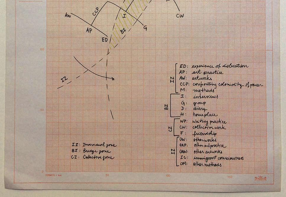 The aim is to understand how my art practice can engender individual and collective processes for exploring experiences within displacement that stimulate the production of life narratives and, in turn, open the space of practice for decolonial thinking, knowing, sensing.