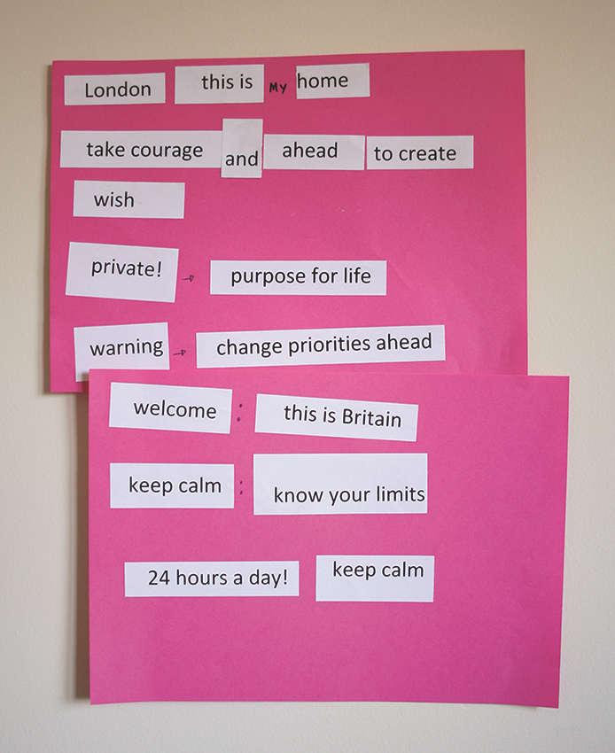 The main objective is to create artistic responses to my personal experiences of geographical displacement and dislocation in language and, within this process, to develop methods to investigate stories of language and place among a group of twelve Brazilian women living in London. Moreover, I want to understand how the autobiographical dimension of my individual practice can connect to convivial places for narrating life together