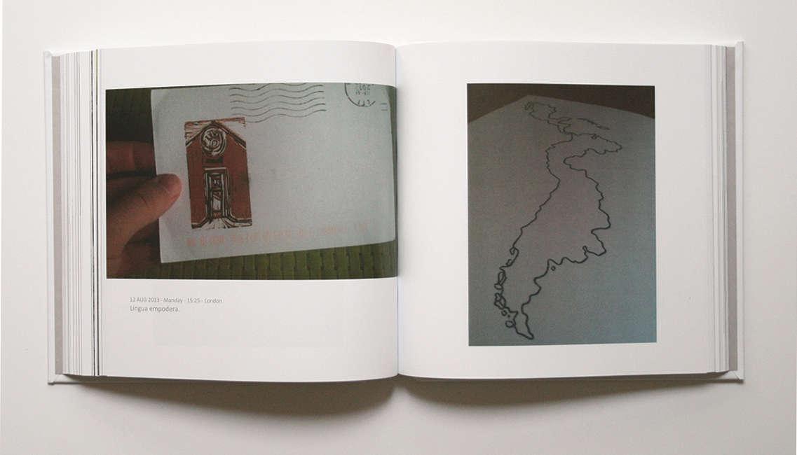 As part of my methodology, I have explored life writing genres of diary, memoir, and correspondence through photography, printmaking, drawing, postcards and artist’s books. On many occasions, photography worked as a tool for creating a personal and embodied vocabulary with words collected in the city, whereas artist’s books became platforms for combining such photographs and creating autobiographical narratives. Thus, the diary worked as a private place for writing in Portuguese and photographing daily life based on feelings and thoughts activated by displacement and dislocation in language; memoir, especially its sub-genre ‘language memoir’ (see section 2.2.2.1), is conceived as a shareable space where life narratives can be structured through assembling texts and images and playing with their meanings. Correspondence is focused on the postcard, which is a format often used to address city landmarks and travelling narratives from ‘here’ to ‘there’ and vice versa