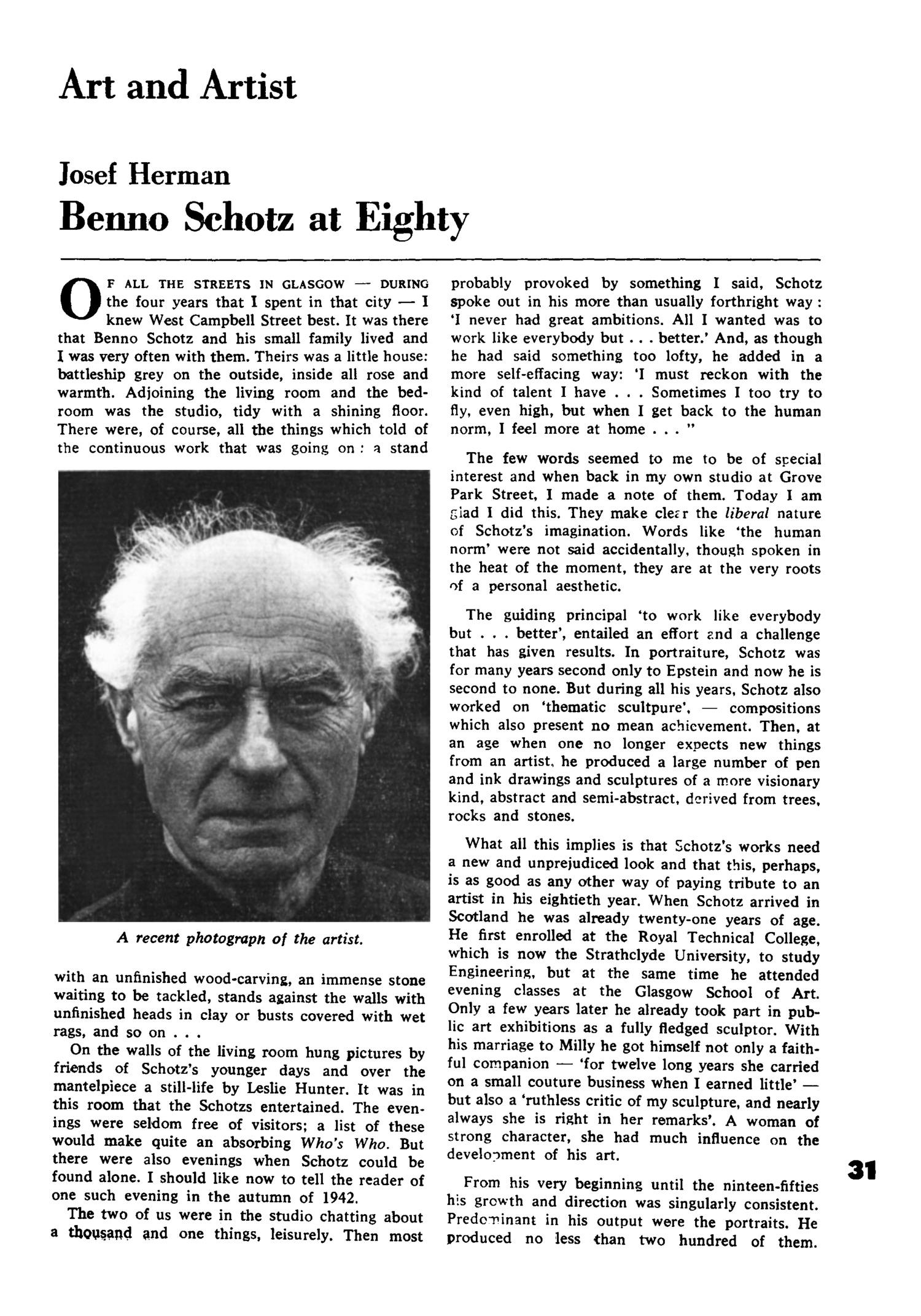 Spring 1971 - Benno Schotz at Eighty by Josef Herman