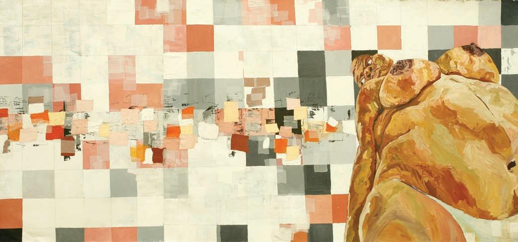 Ebony Patterson (b. 1981, Jamaica), Savilian Gaze, ca. 2004. Mixed media on paper, 48 x 108 in. Collection of Eddie Chambers.