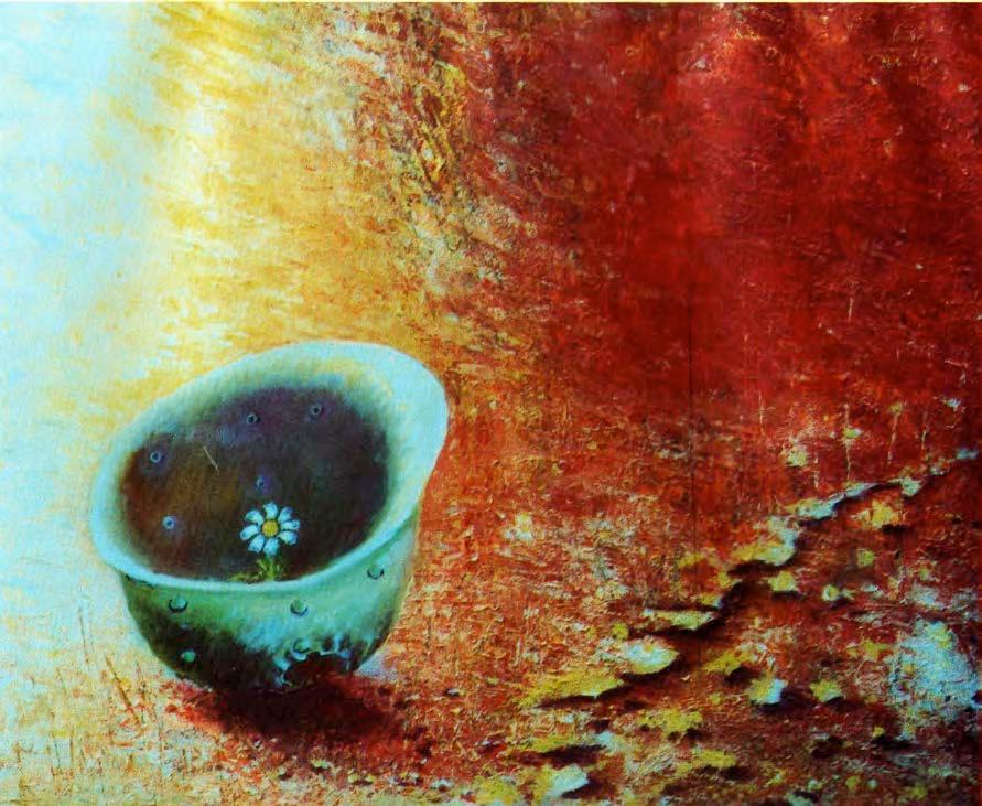 Khalifa Qattan, Explosion, 1978, oil on canvas, 50 x 60 cm, published in Khalifa Al Qattan: Al fannan al ensan, p. 71