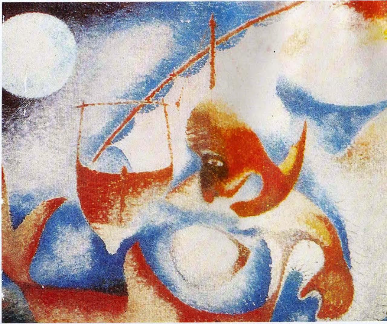 Khalifa Qattan, The Ship of Goodness and Generous Hand, 1975, oil on canvas, 150 x 100 cm, published in Prophesy of Khalifa Qattan, p. 35