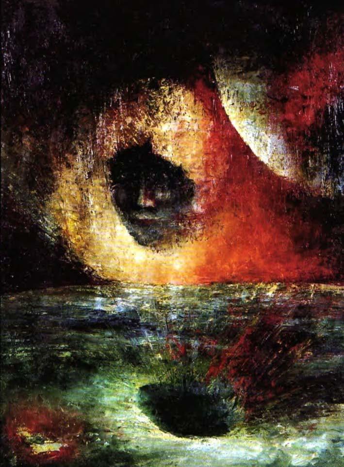 Khalifa Qattan, Is Life a Cosmic Phenomenon?, 1979, oil on canvas, 40 x 55 cm, published in Khalifa Al Qattan: Al fannan al ensan, p. 86