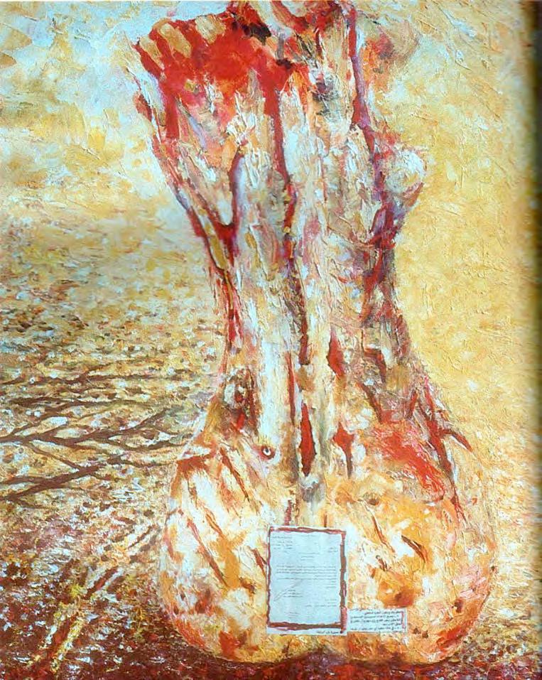 Khalifa Qattan, The Deep Wound, 1984, oil on canvas, 85 x 105 cm, published in Khalifa Al Qattan: Hayatoh wa aamaloh, p. 27